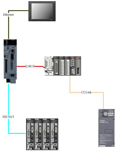 該配置首先需要通過以太網將視覺系統與三菱PLC相連,以便傳輸位置數據。同時需要一個提供插補功能的運動控制器將機械抓取裝置以最快的速度抓取物品,以提高生產效率。